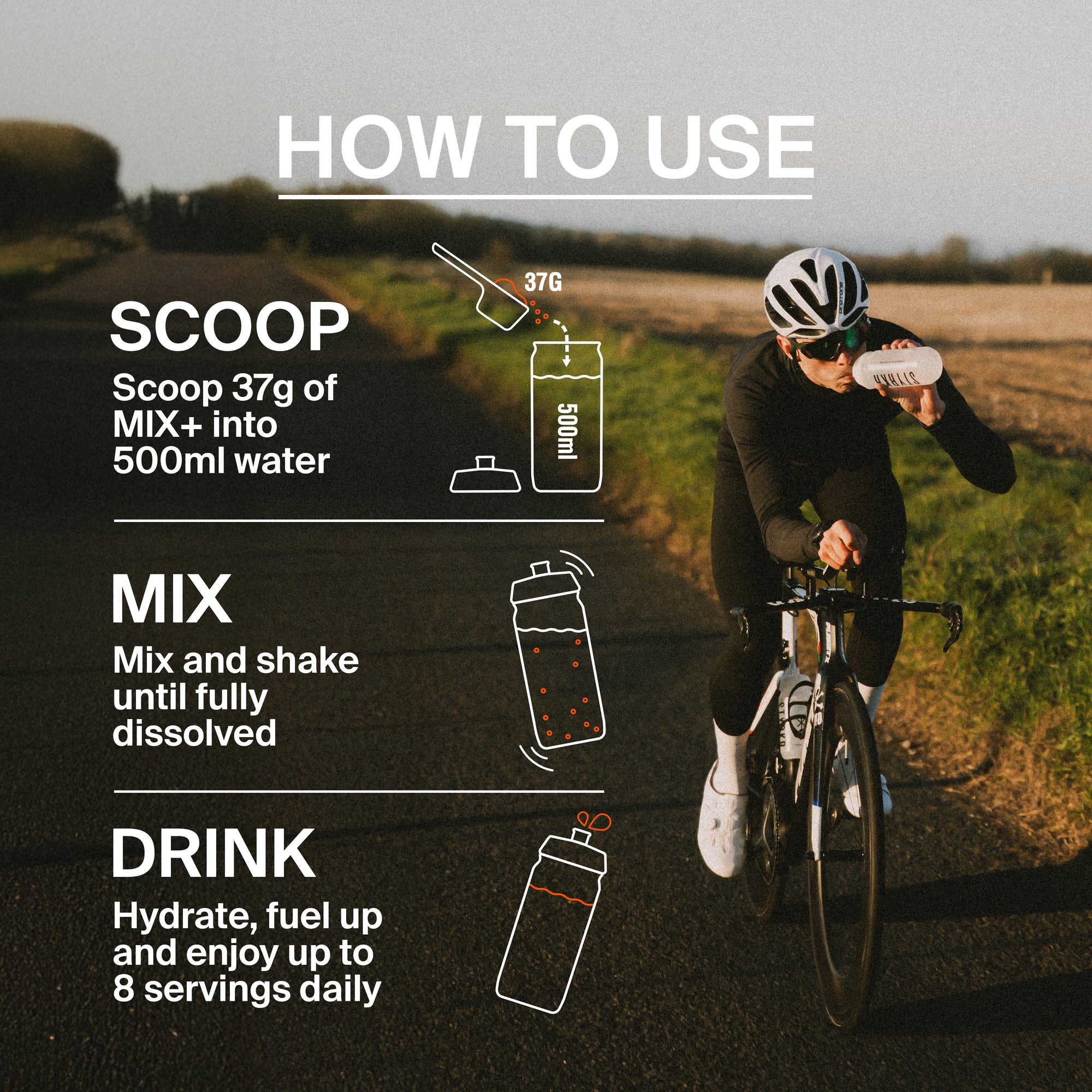 MIX+ Blood Orange delivers fast-acting, dual-source carbohydrates and essential electrolytes in a refreshing citrus blend, formulated to fuel performance and support recovery. A daily training aid, optimal for early-risers, because training fasted or getting breakfast onboard isn’t always an option. Take MIX+ before or during your workout, adjusting the serving based on your personal preference.